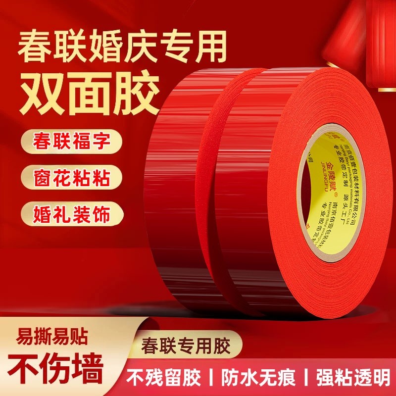 自粘春联对联专用透明双面胶撕下无痕多功能年画婚车婚房粘力持久易撕胶带高粘易清理喜富字装饰固定双面胶带