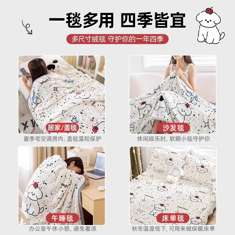 A类牛奶绒毛毯冬季盖毯可机洗单人宿舍毯披肩午睡毯双面绒床单厚