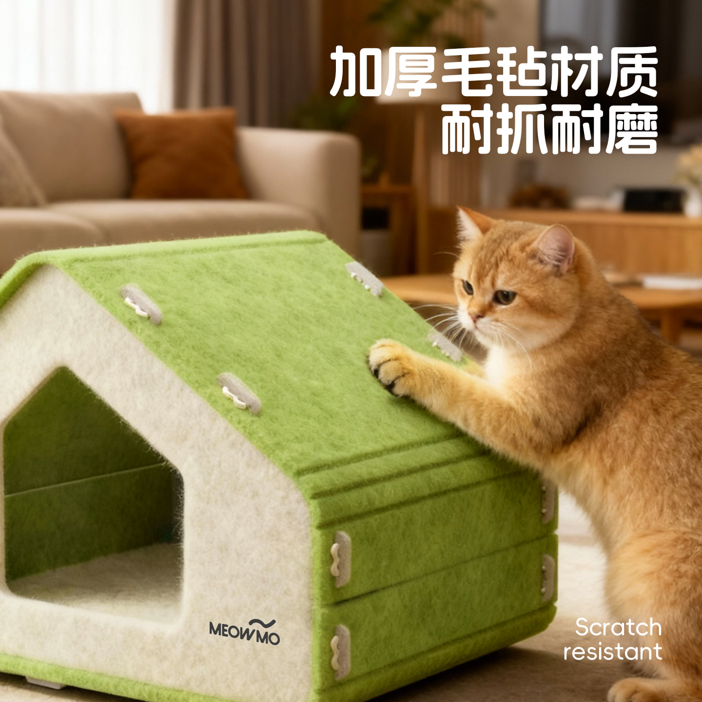 萌尾毛毡猫窝猫咪玩睡一体半封闭式猫房子耐磨不掉屑睡窝四季通用