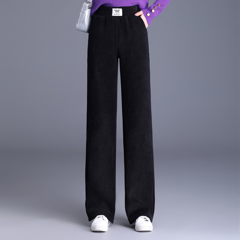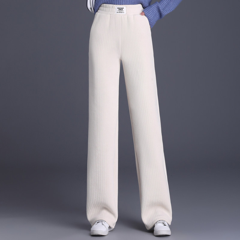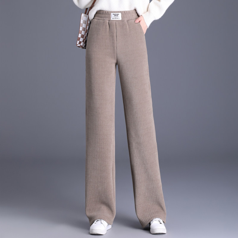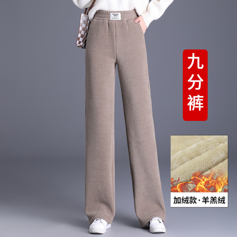 雪尼尔阔腿裤女秋冬季新款加绒裤子女士直筒休闲保暖羊羔绒裤大码
