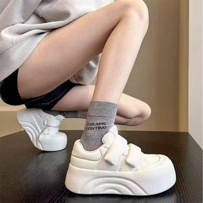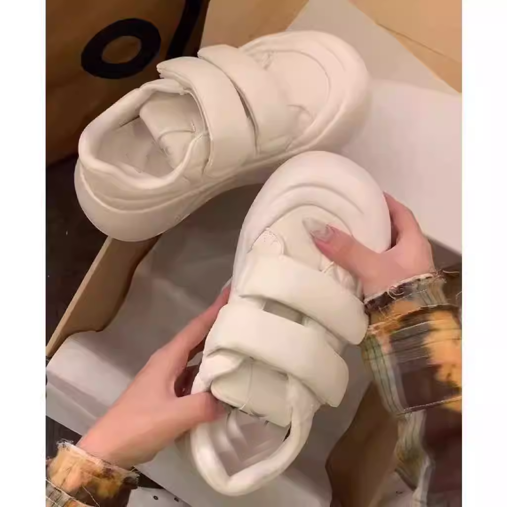 圆头厚底大头鞋女2024秋季魔术贴休闲鞋丑萌运动鞋增高百搭小白鞋