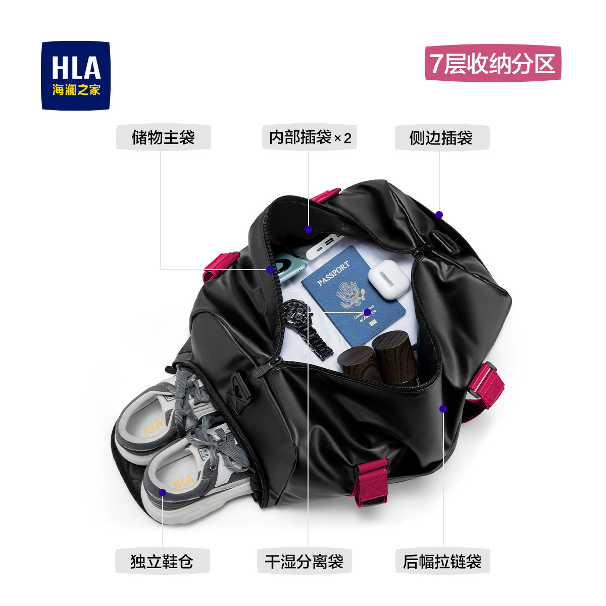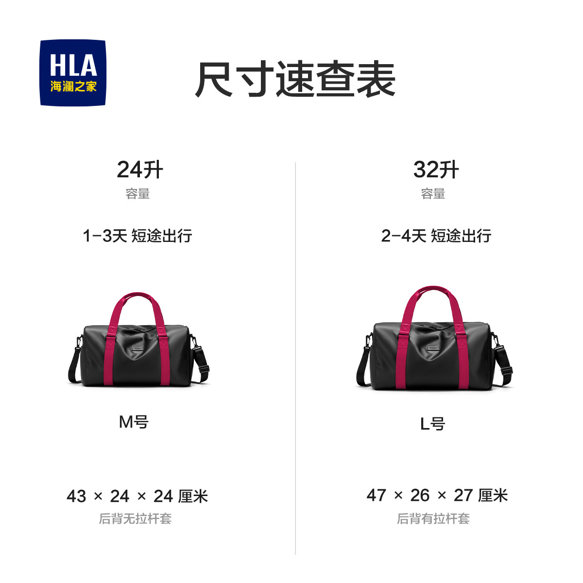 HLA/海澜之家短途旅行包女轻便大容量出差手提旅游包行李袋男健身