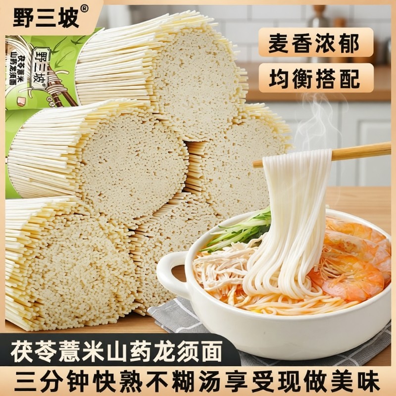 野三坡正宗茯苓薏米山药龙须面铁棍挂面全麦荞麦手工面条旗舰玉米