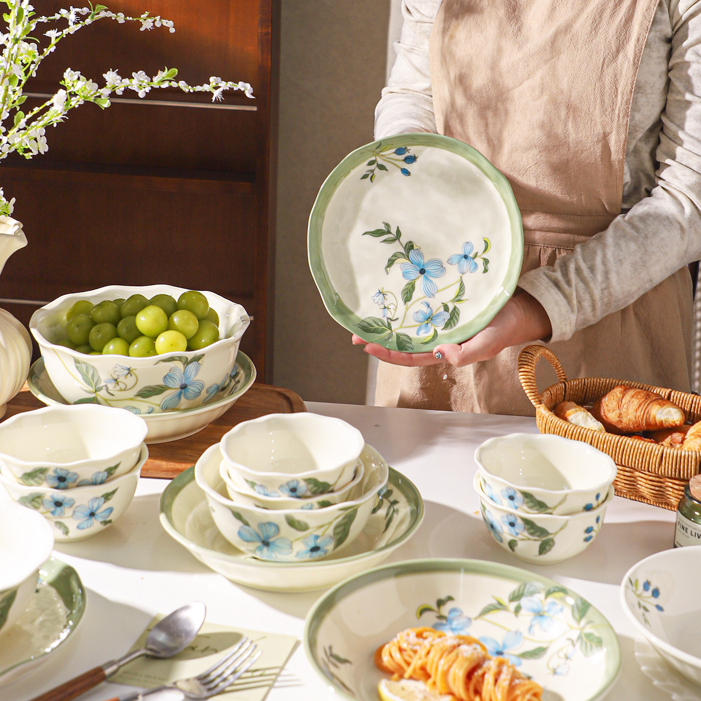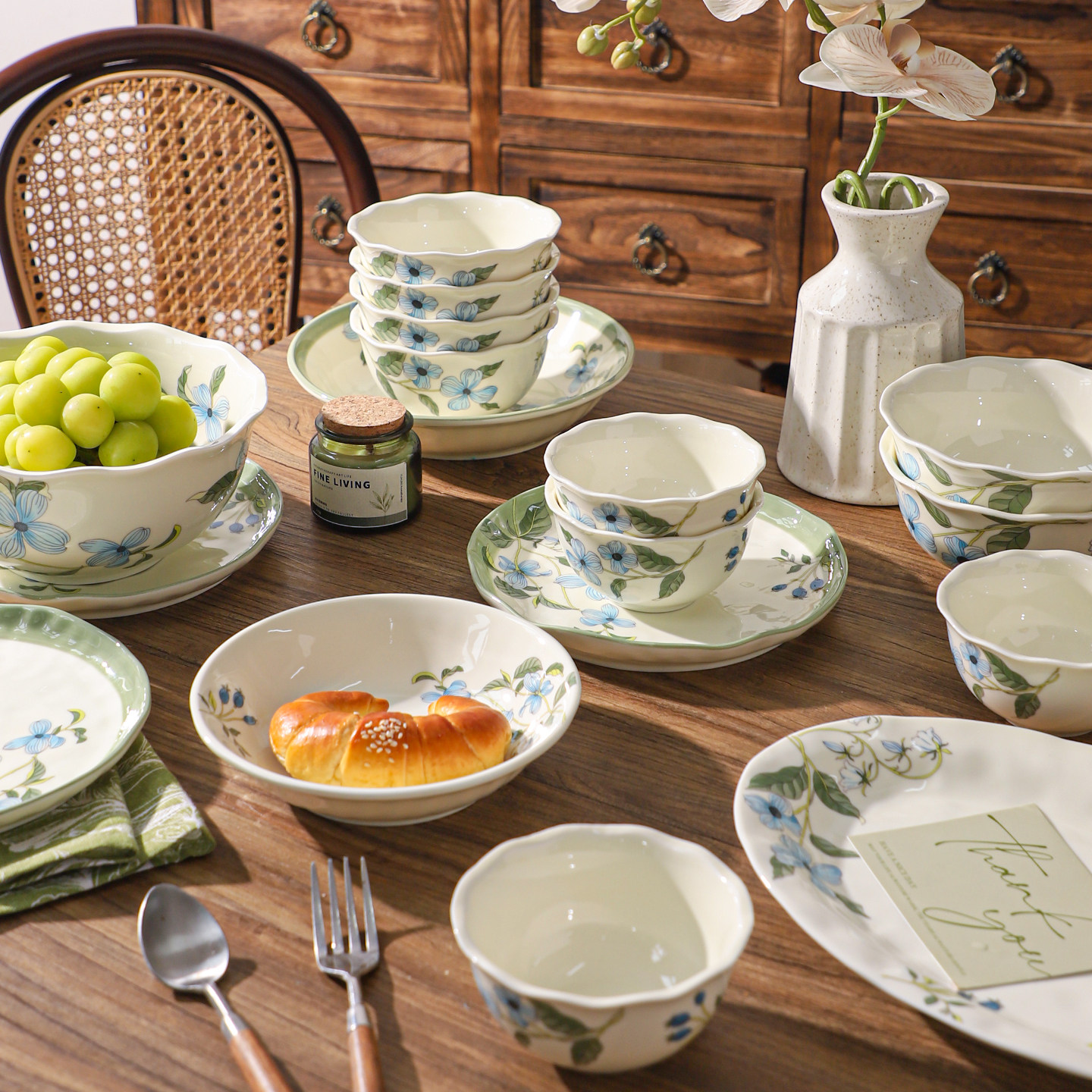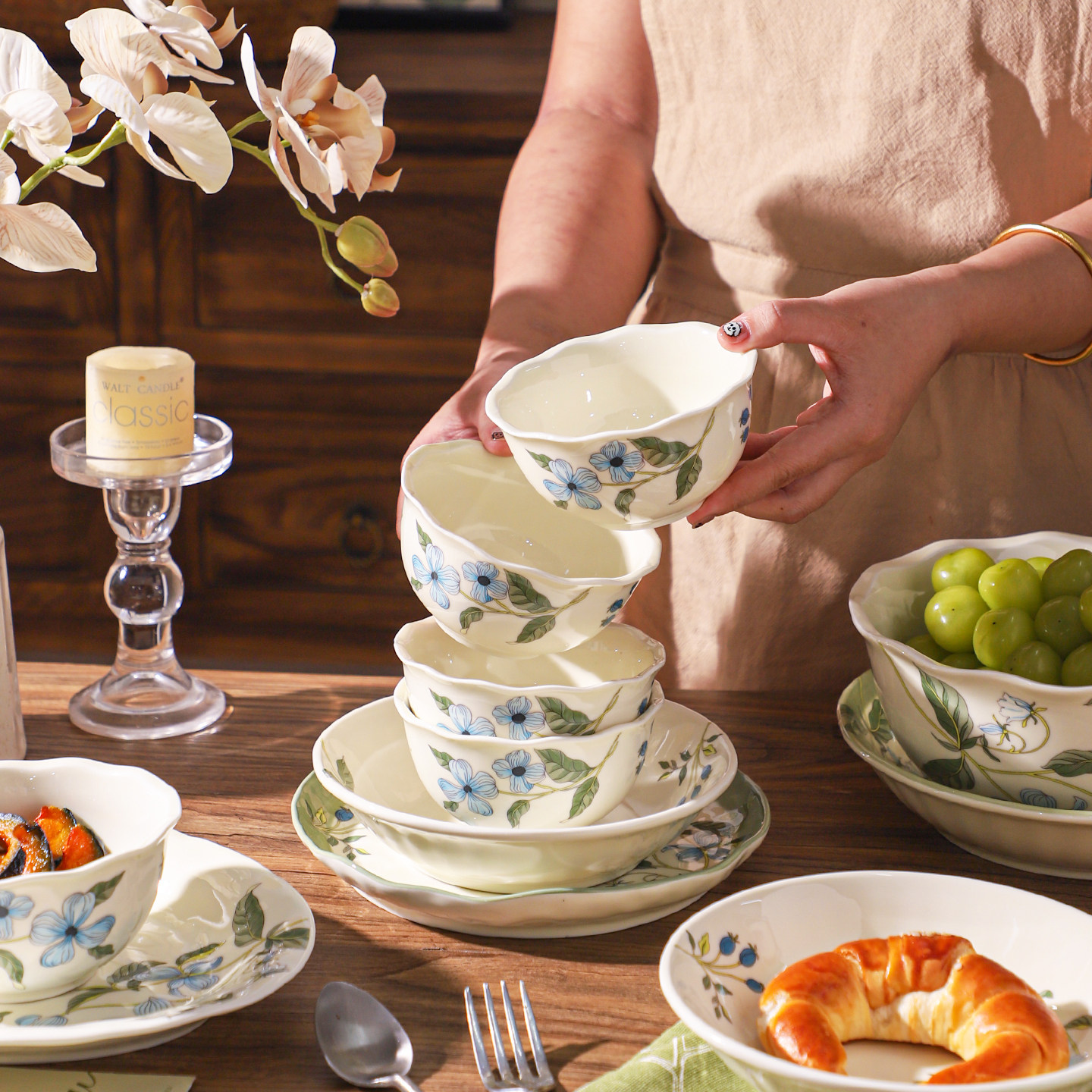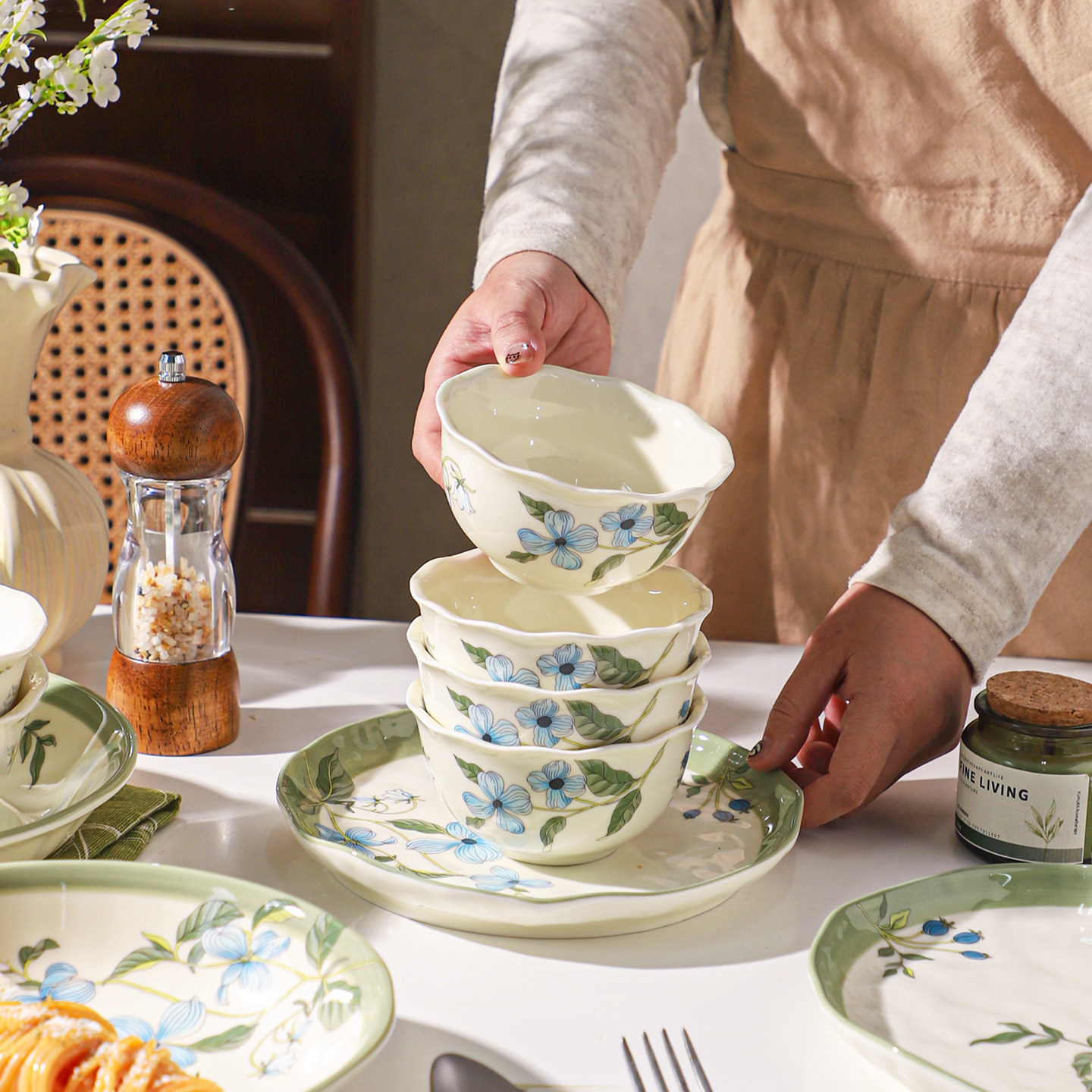 舍里小清新花边饭碗特别好看的米饭碗家用碗碟套装菜盘餐盘大汤碗