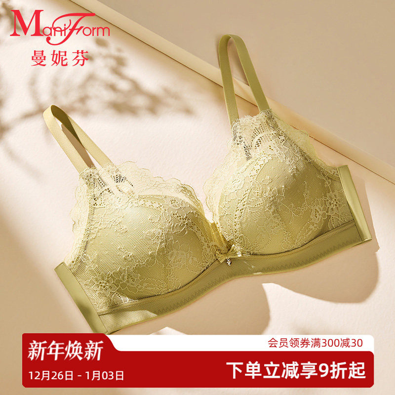 曼妮芬无钢圈聚拢内衣女蕾丝文胸女士胸罩高颜值舒适胸衣
