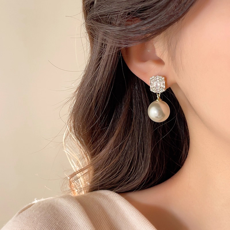 S925银针轻奢小众精致方锆耳钉女款百搭气质珍珠耳钉耳饰爆款法式