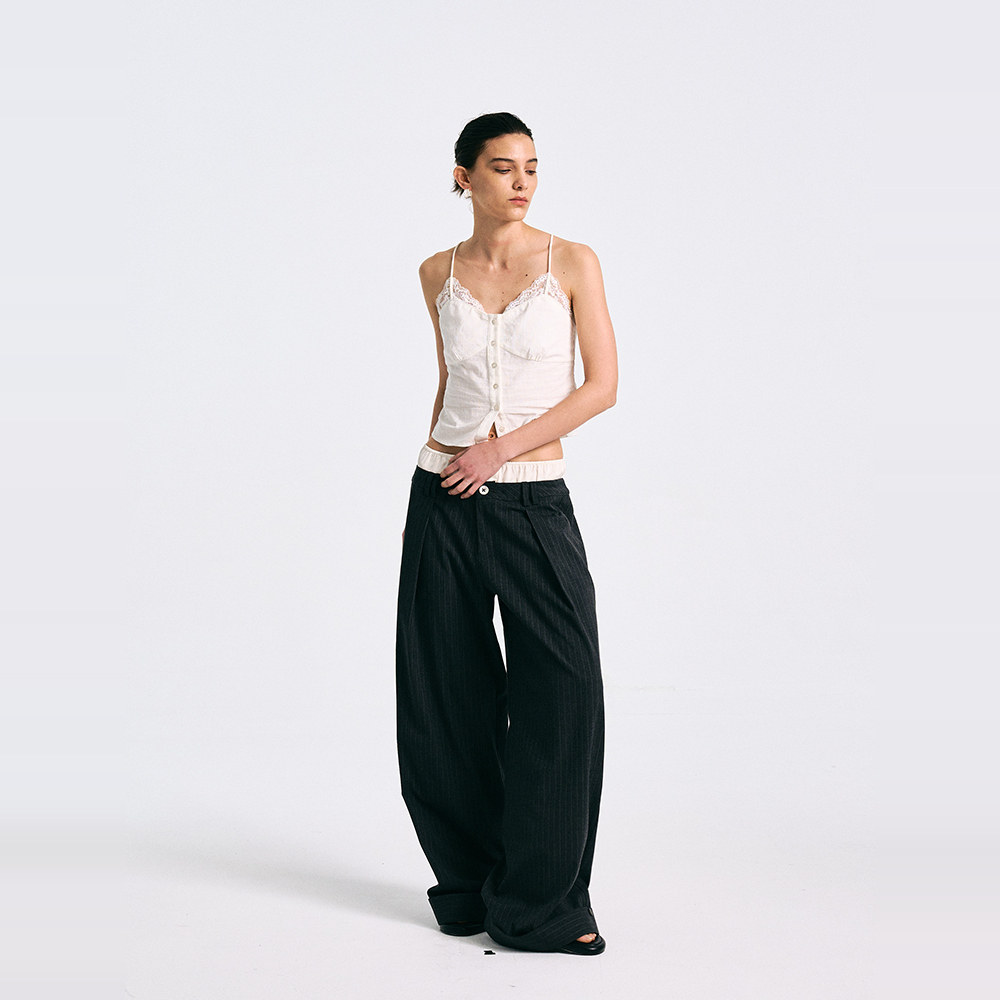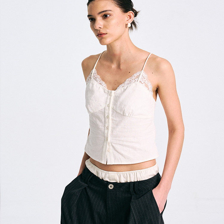 阿娇钟欣潼同款Howwell 25SS棉麻蕾丝吊带女法式刺绣外穿打底背心