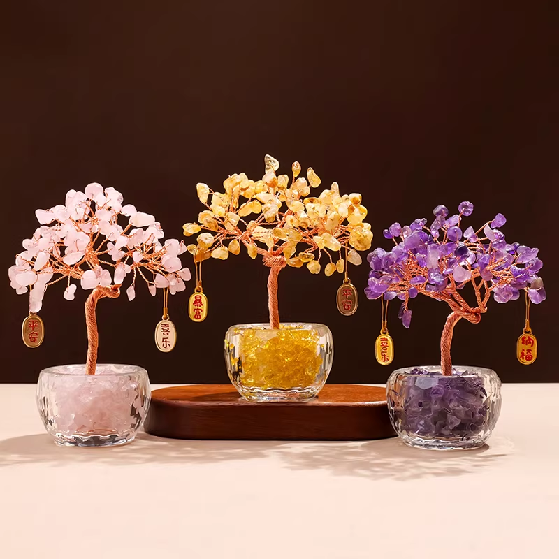 黄水晶发财树摆件摇钱树办公室桌面玄学风水装饰品家居摆设招财