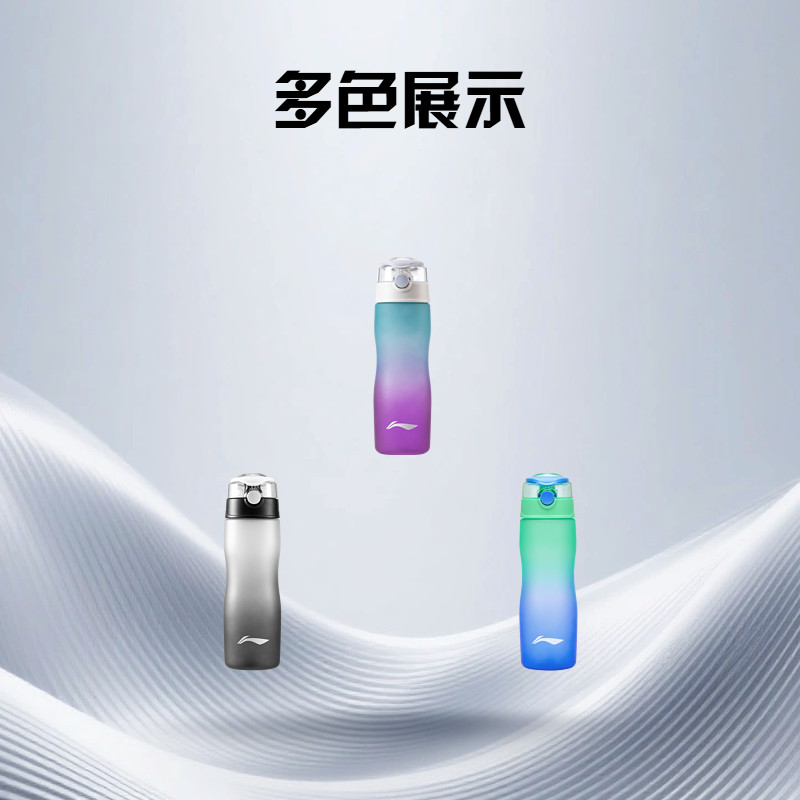 李宁配件 男女同款双色渐变便携大容量防摔型运动训练水壶750ML