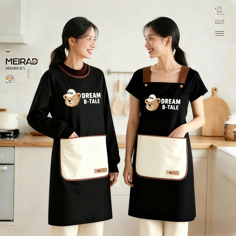 新款棉布耐磨围裙长袖厨房家用防污罩衣透气围腰做饭上班工作服女