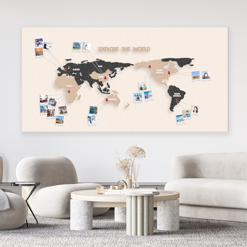 毛毡地图旅行足记打卡照片墙创意背景玄关客厅墙面装饰展示板自粘