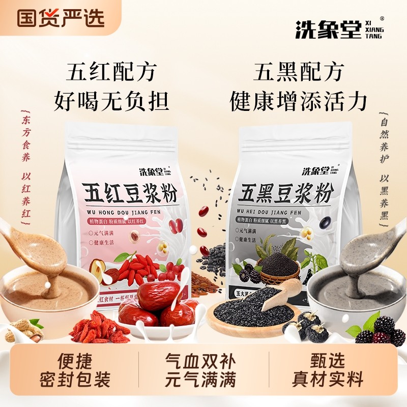 洗象堂五黑豆浆粉黑芝麻发养冲泡五红营养冲饮袋装饮料红豆国货