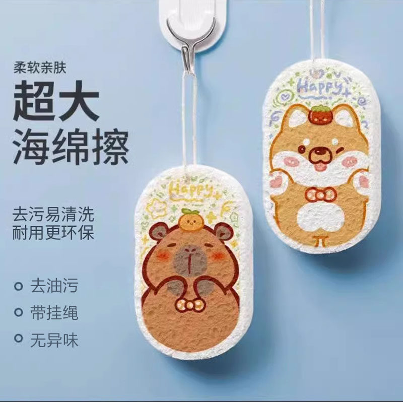 加大加厚木浆海绵擦家用厨房吸水变大不沾油洗碗抹布刷锅神器压缩