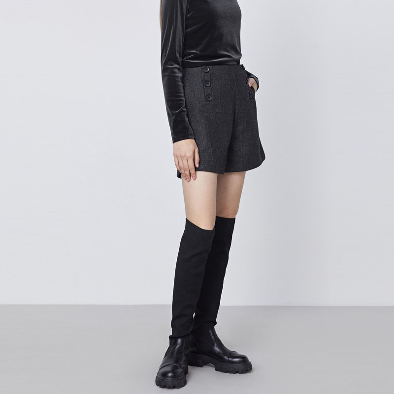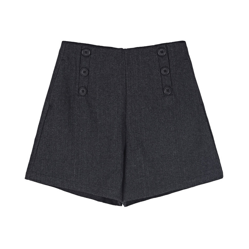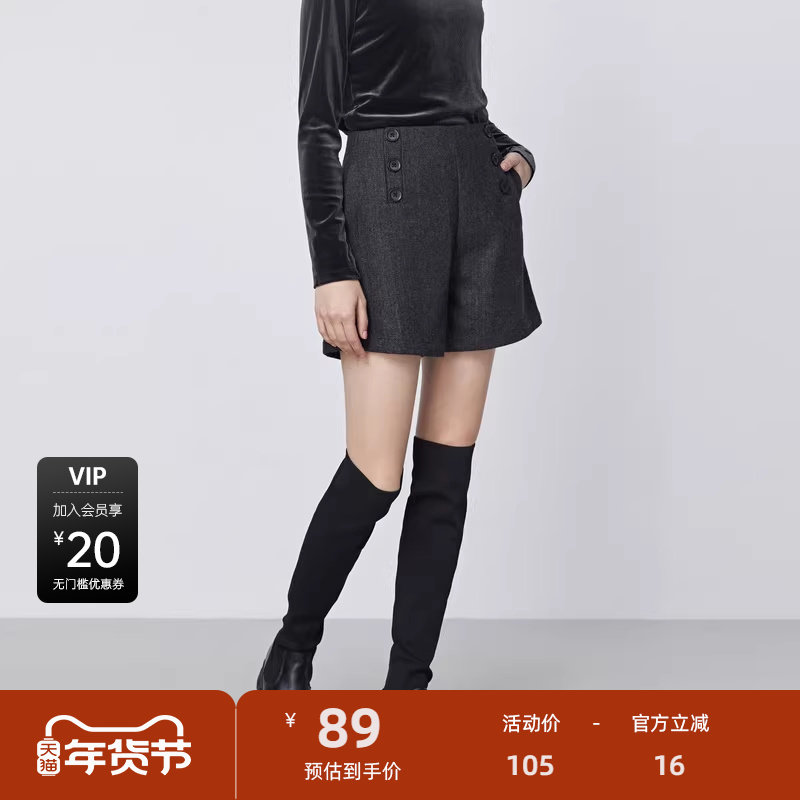 【秒杀】sdeer圣迪奥女装复古休闲暗条纹毛呢A字短裤S21460911