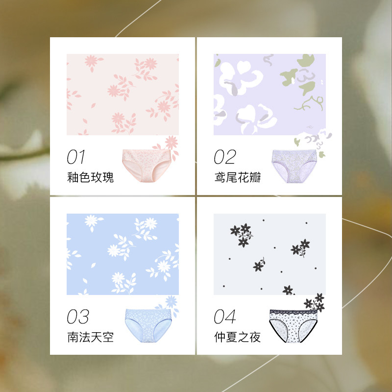 ubras法式碎花内裤女莫代尔抗菌裆浪漫蕾丝印花低腰透气三角短裤