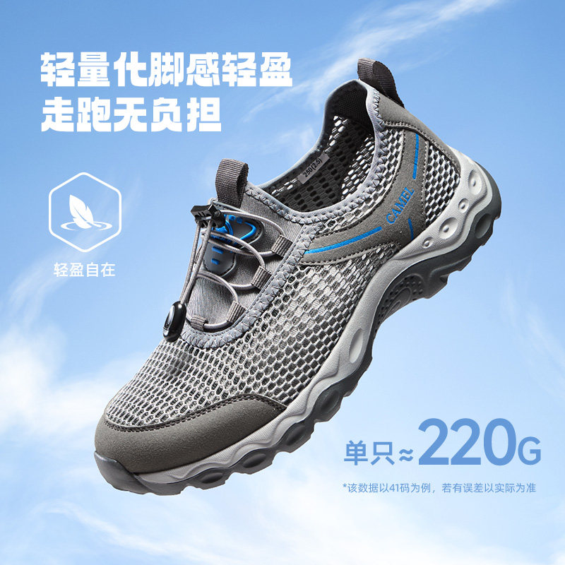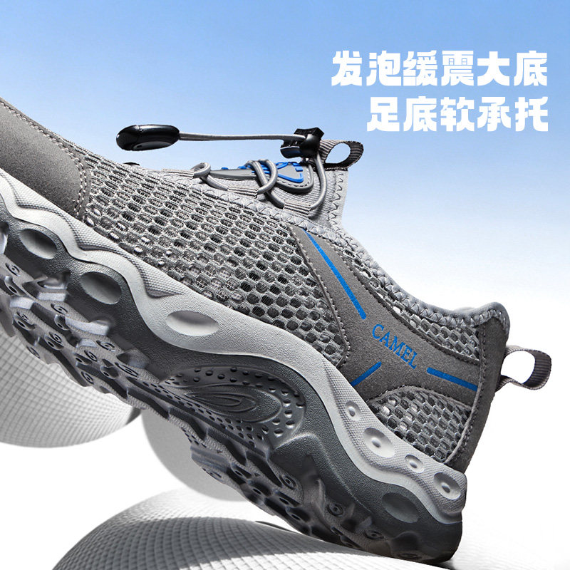 骆驼男鞋2026夏季轻盈透气软弹免系休闲舒适大网孔健步网鞋