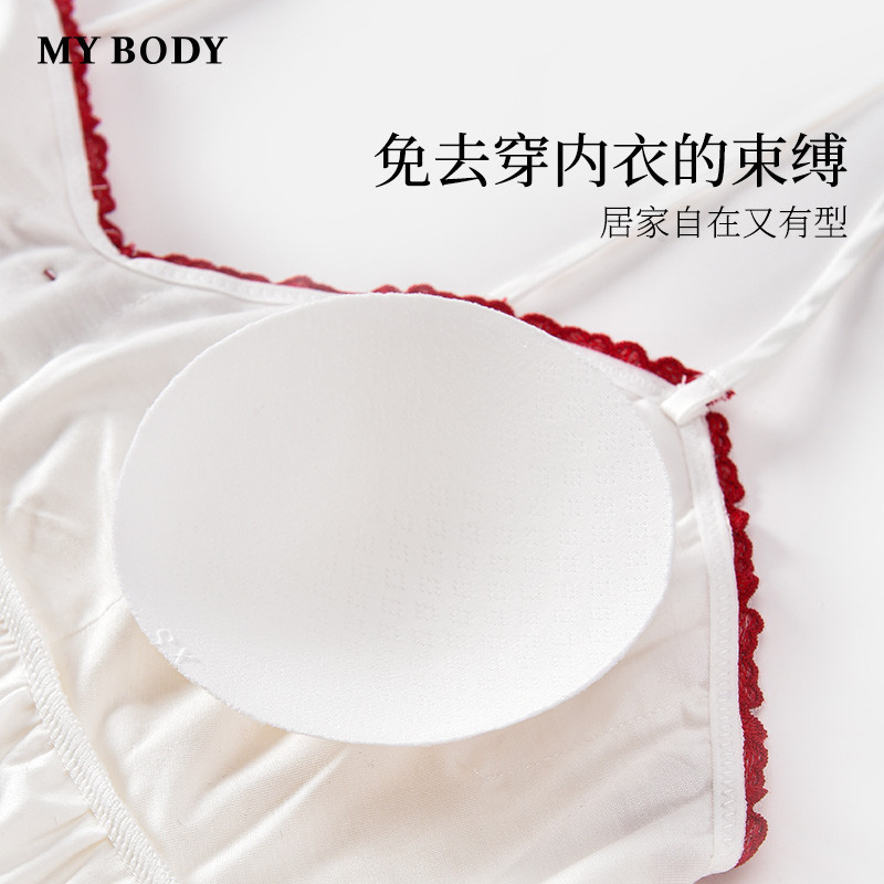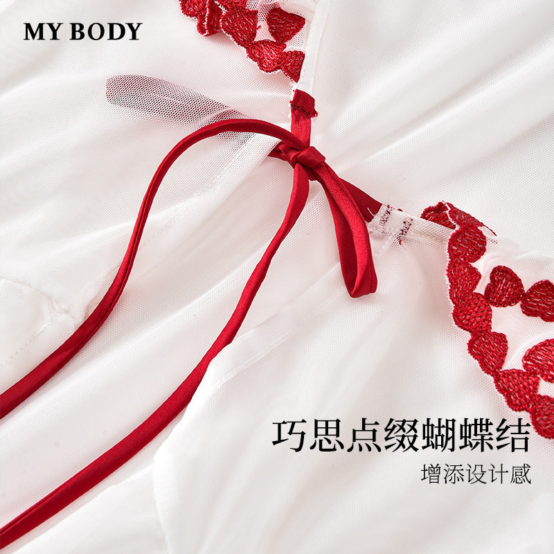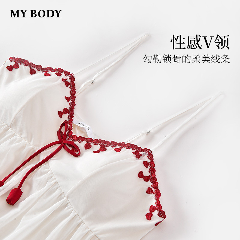 商场同款MYBODY夏季新款睡裙套装柔软网纱爱心刺绣吊带睡裙家居服
