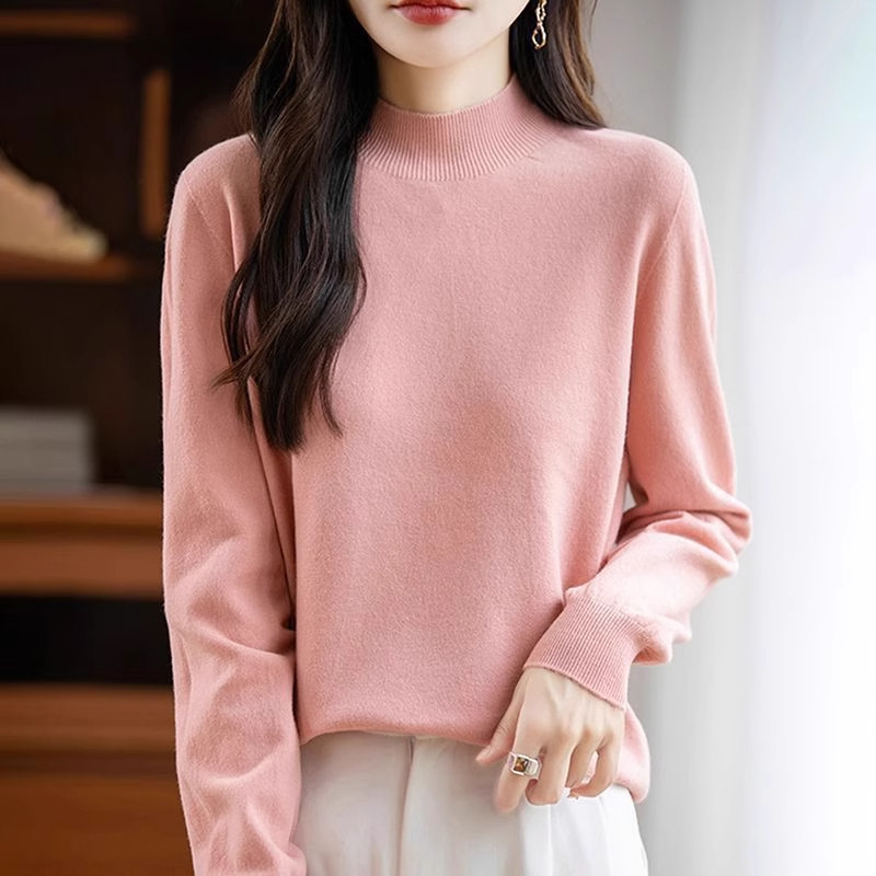 一线成衣无缝女半高领套头打底衫秋冬内搭毛衣修身长袖羊毛针织衫
