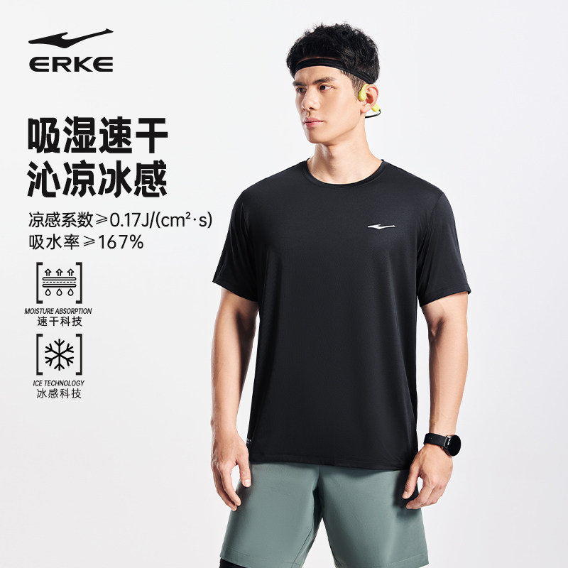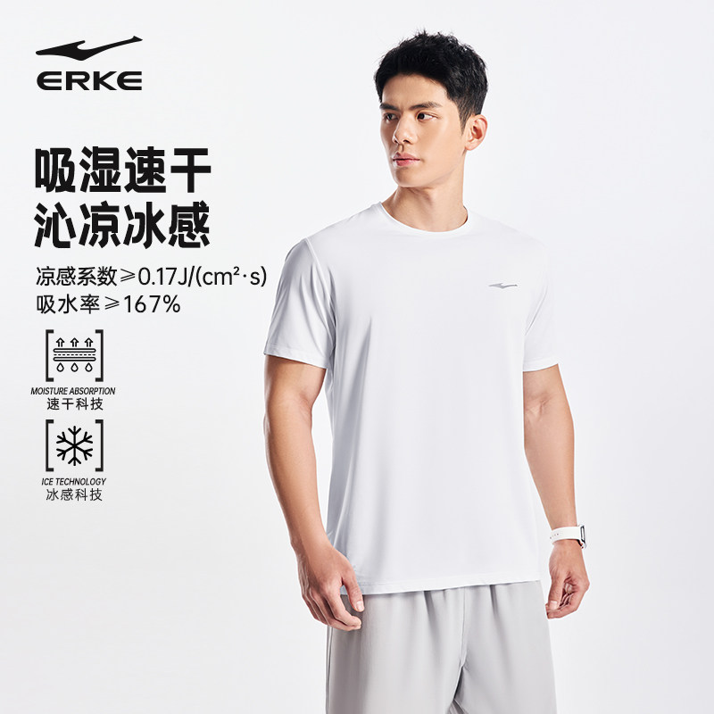 鸿星尔克速干衣男夏季新款男士冰丝短袖t恤男生羽毛球运动服上衣