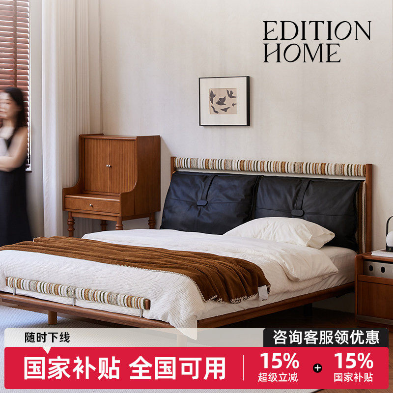 【伯明翰】雅兰真皮床政府补贴高端实木双人大床家用主卧1.8*2米