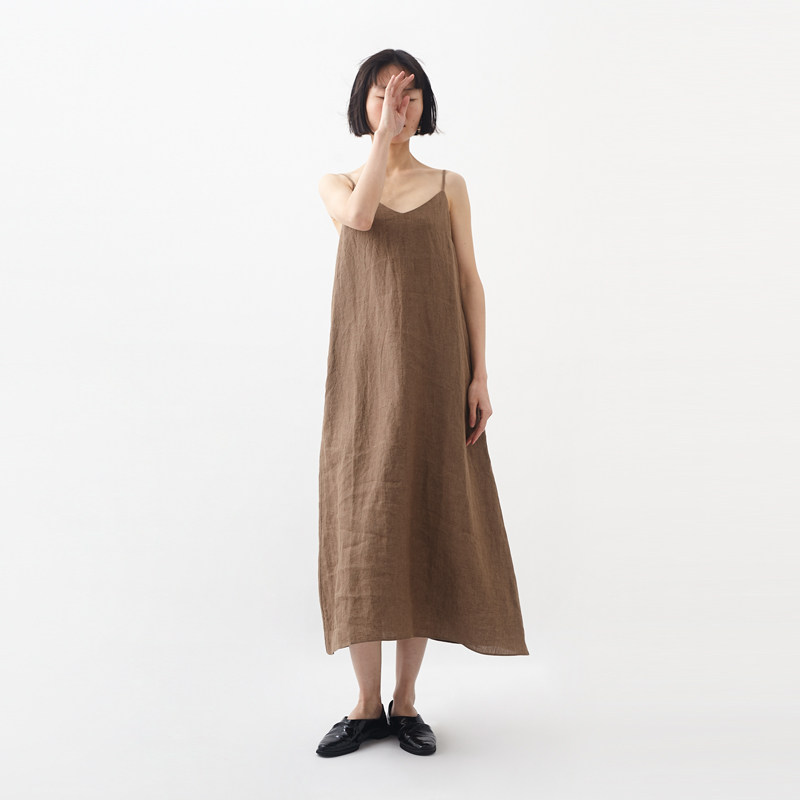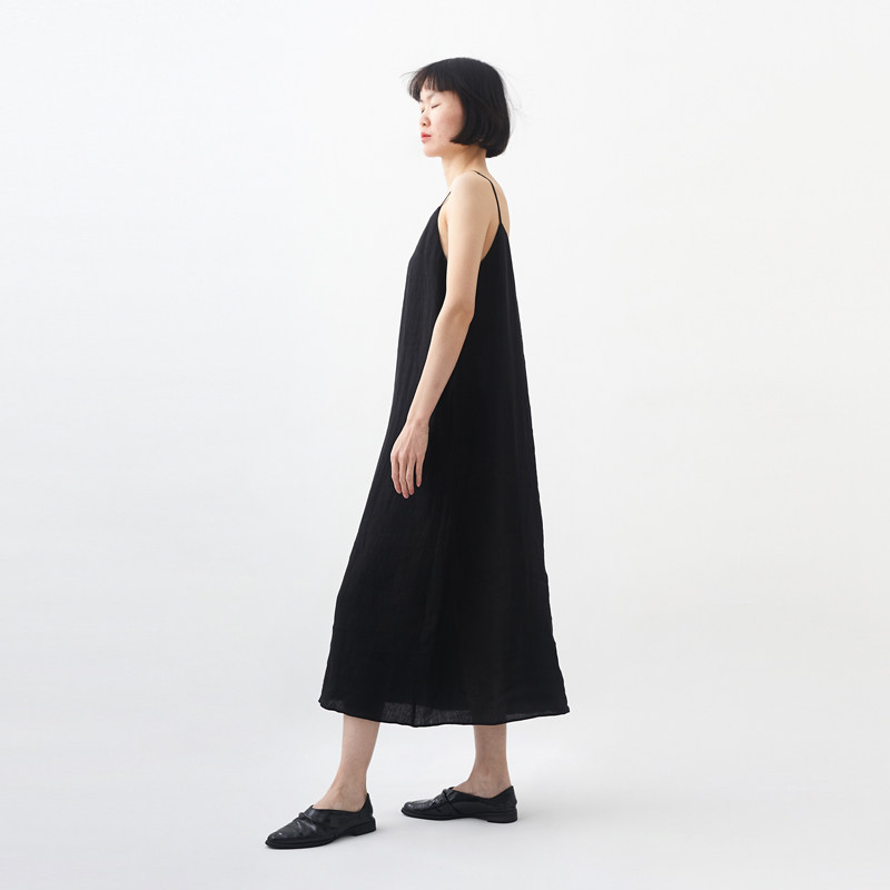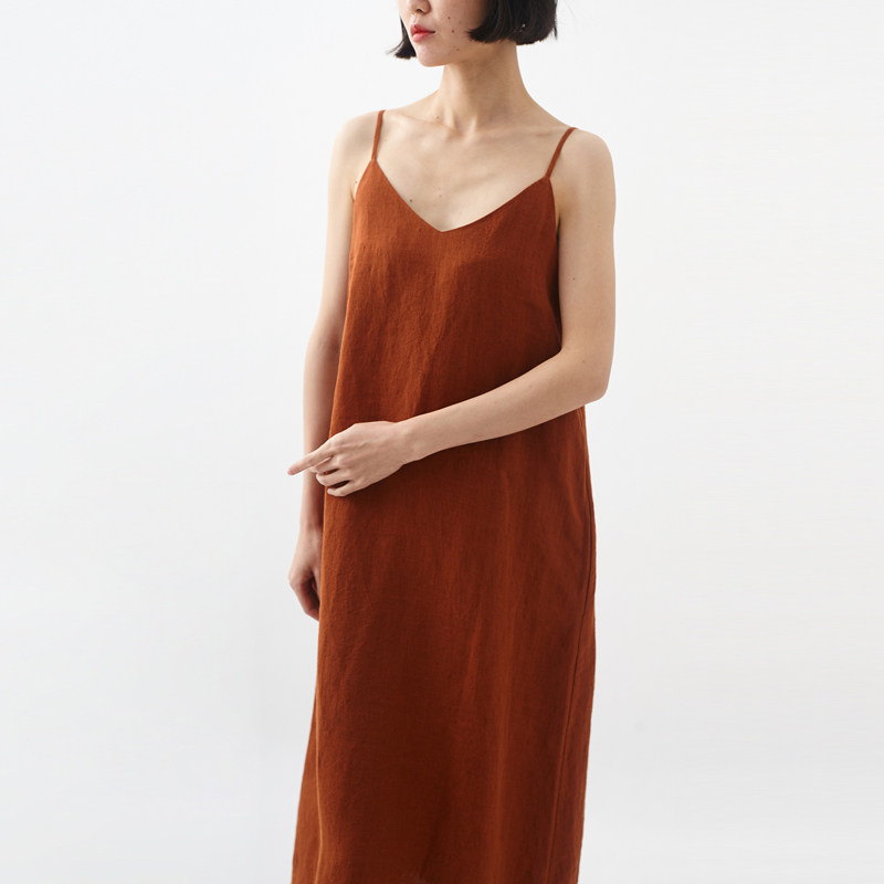 清仓 / 经典色织亚麻长款吊带裙 小鱼春夏无袖文艺复古长裙连衣裙