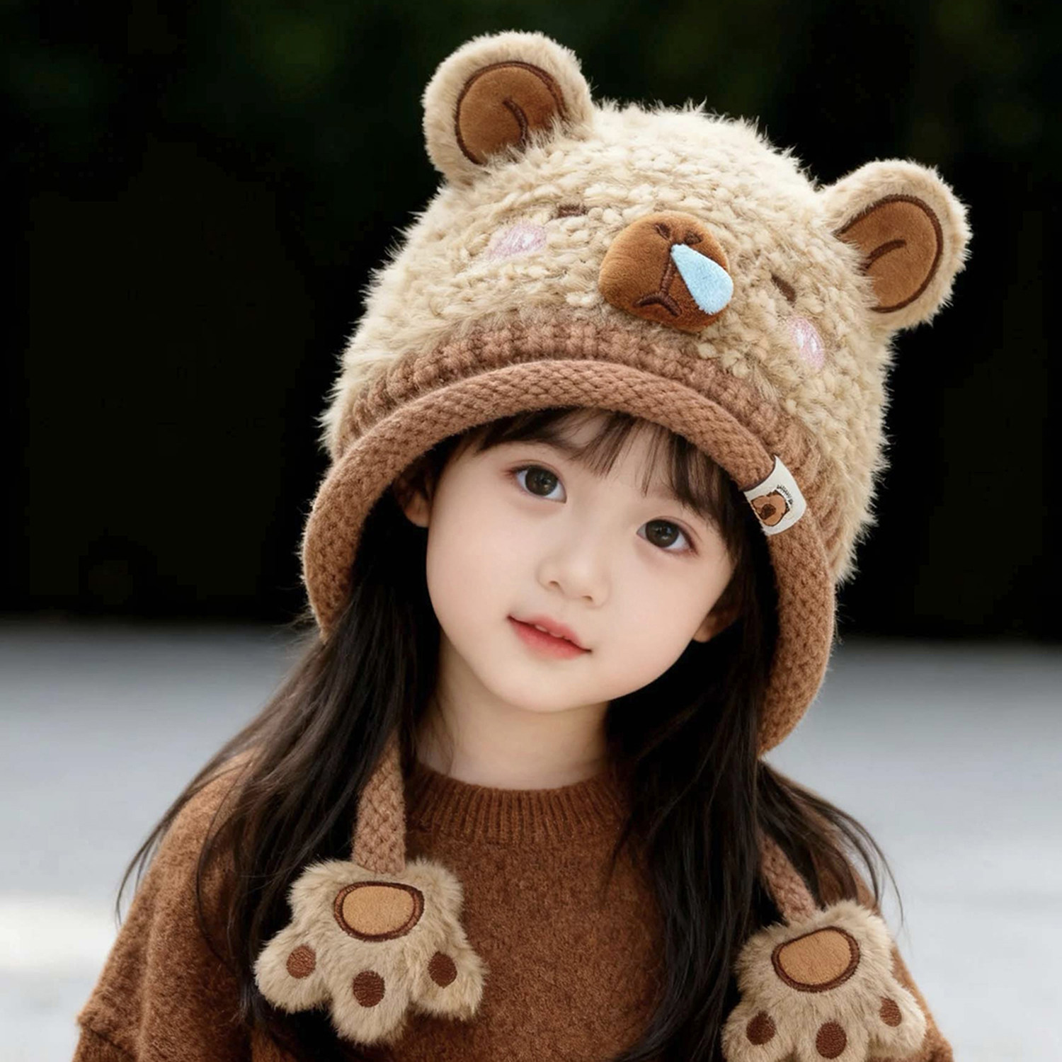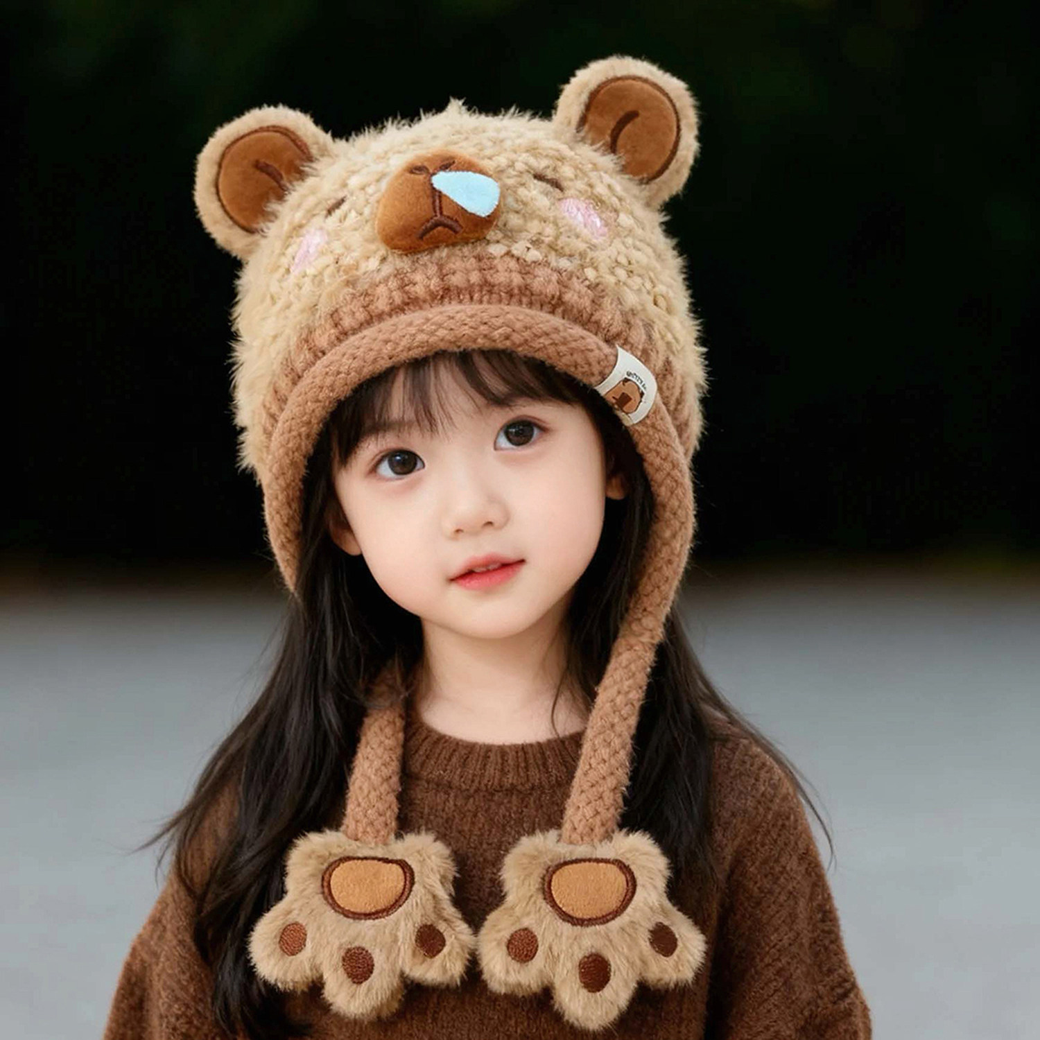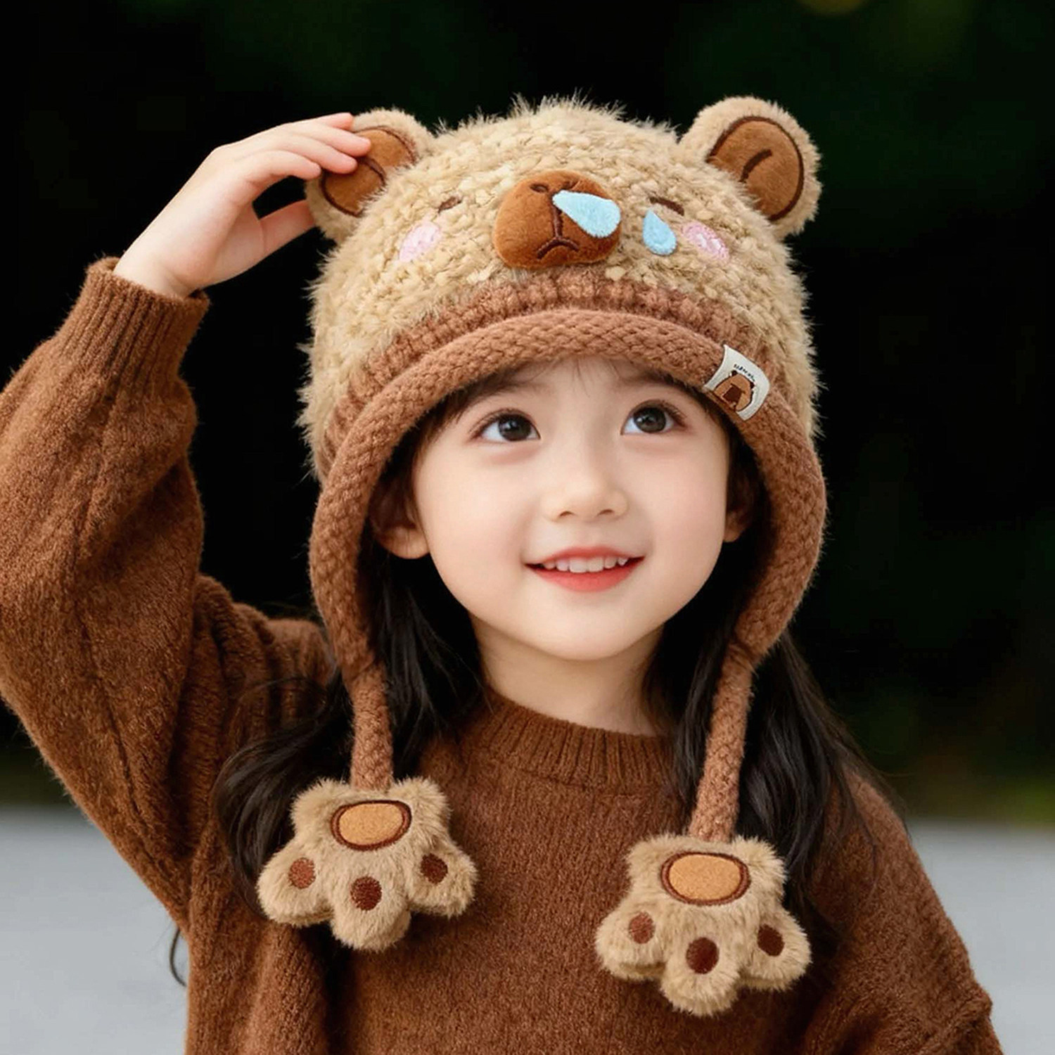 儿童帽子秋冬季秋男女童超萌可爱卡皮巴拉小熊毛绒防风保暖护耳帽