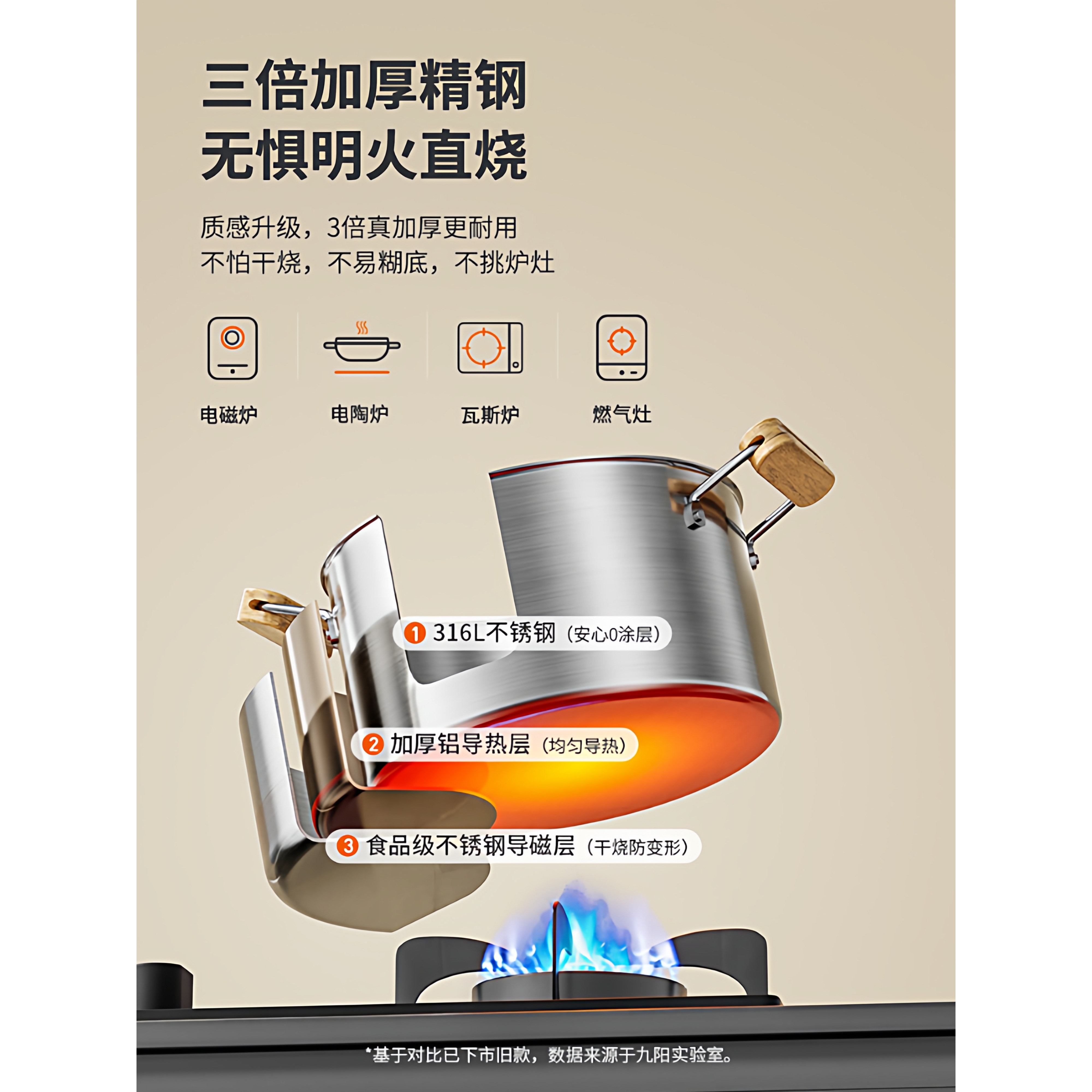 九阳汤锅316L不锈钢煮锅家用带蒸笼蒸锅无涂层小炖锅加厚泡面锅炊