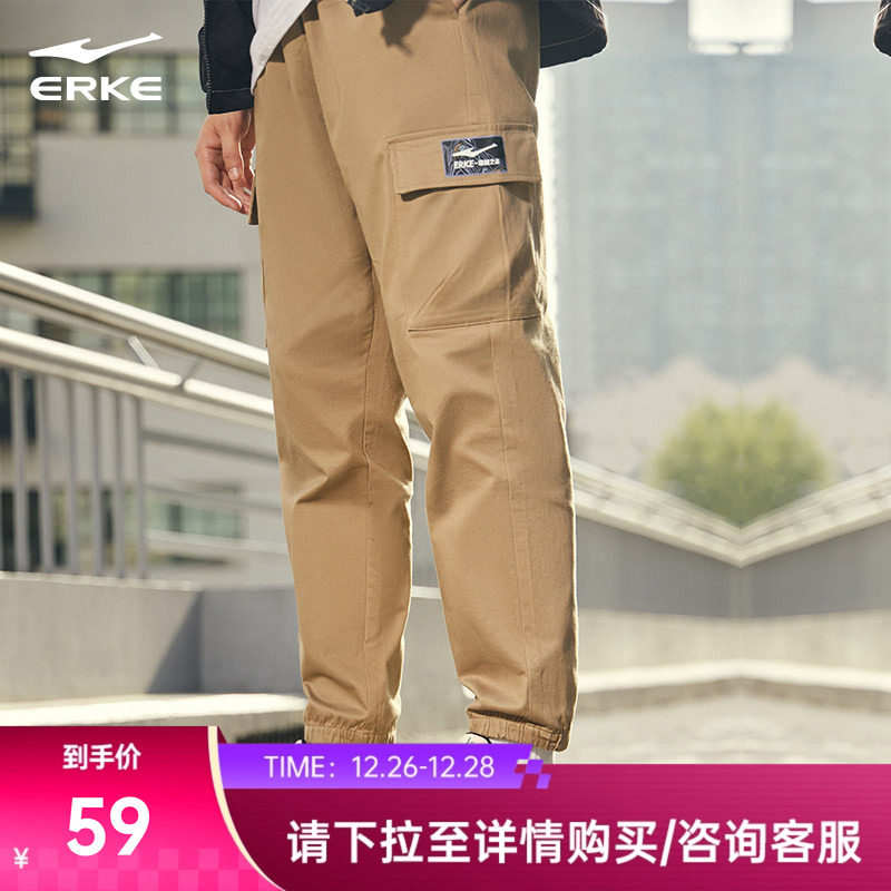 鸿星尔克工装裤男士休闲裤运动裤卡其色男生裤子青少年男裤男装