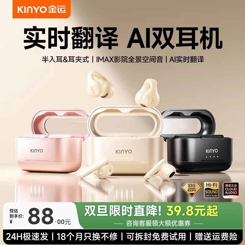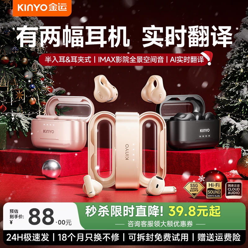 半入耳&耳夹丨影院级空间音效丨AI实时翻译