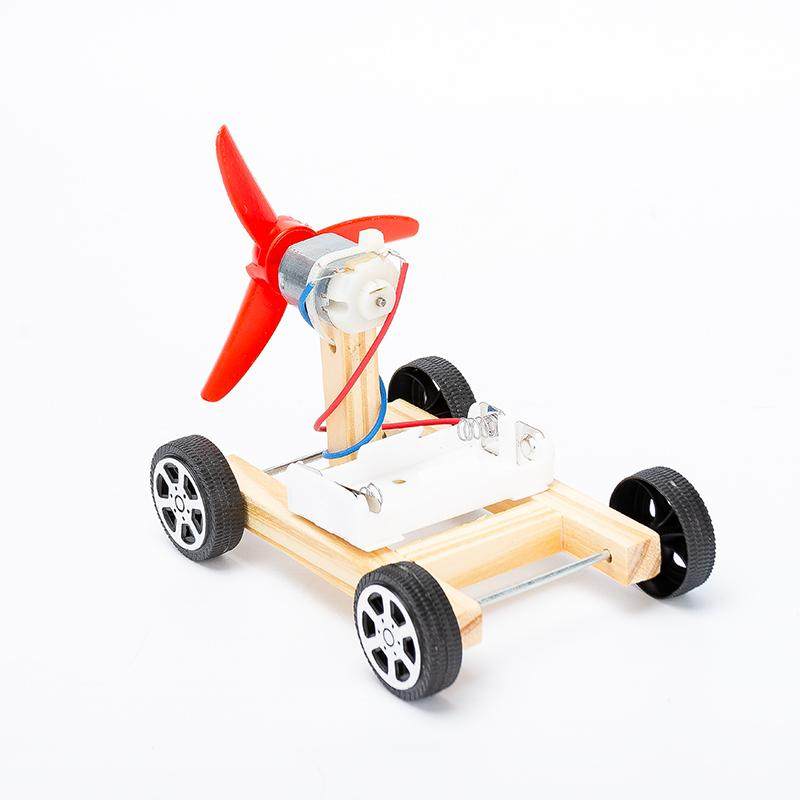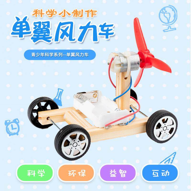 单翼风力车儿童手工拼装材料包风力小车科技小制作科教玩具套装