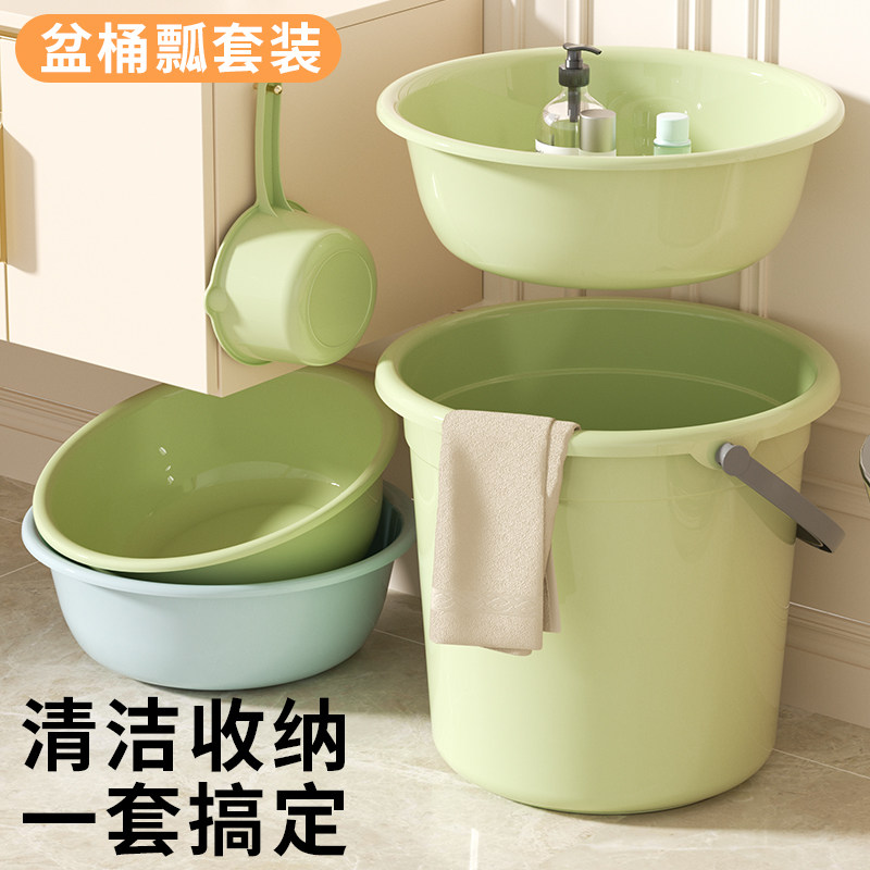 水桶脸盆桶三件套塑料储水桶洗澡桶盆套装学生宿舍用手提桶特大号
