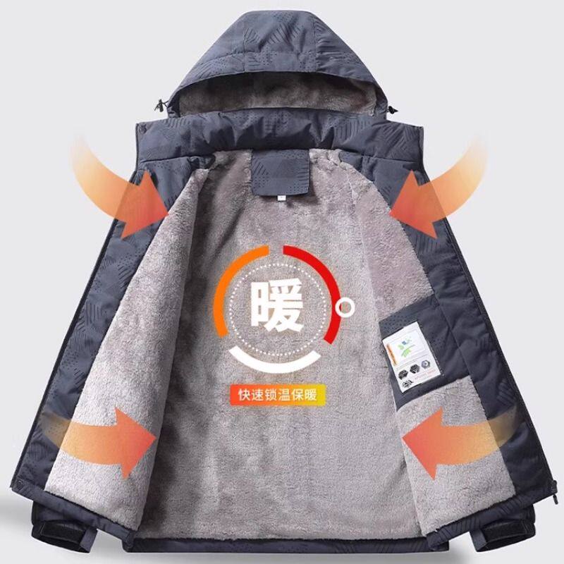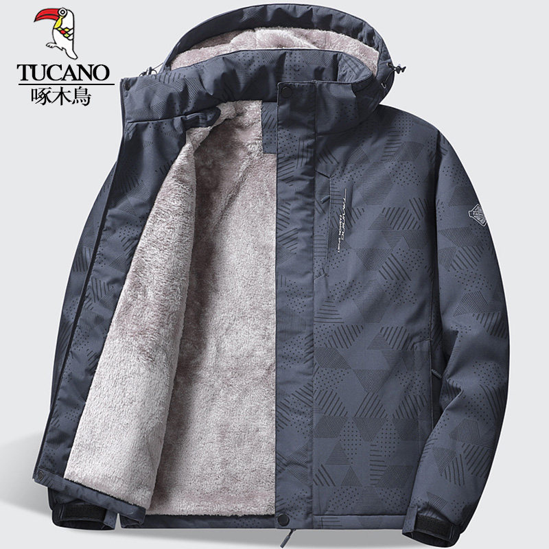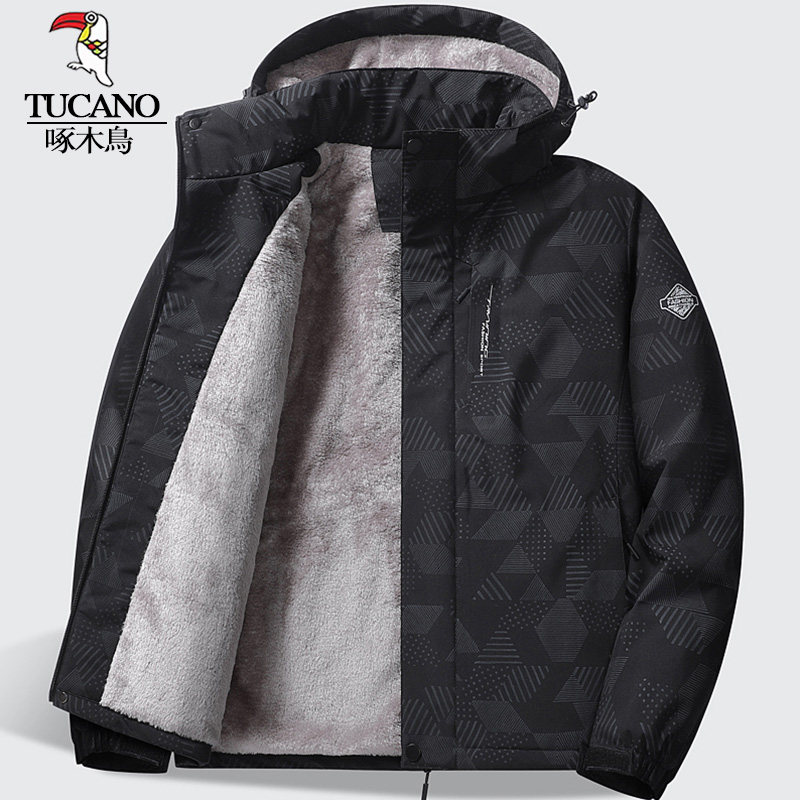 啄木鸟中青年连帽防水风衣男士加绒加厚夹克外套保暖冲锋衣棉衣服
