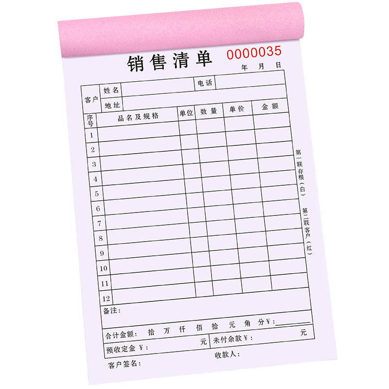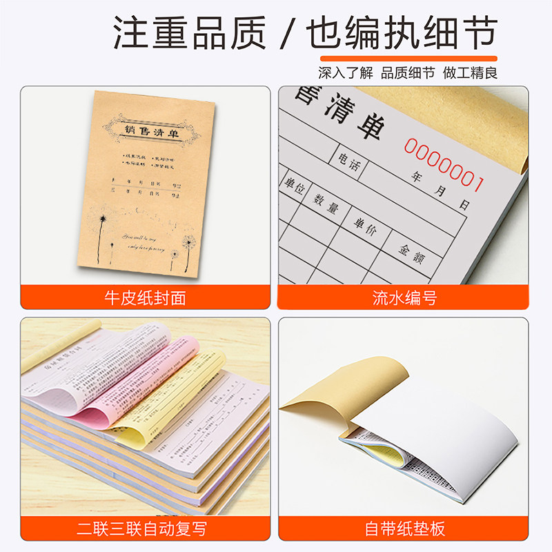 销售清单二联定制商品货物送销货单三联加厚定做食品服装开单本一联材料建材单据四联电器电脑收据手写销售单