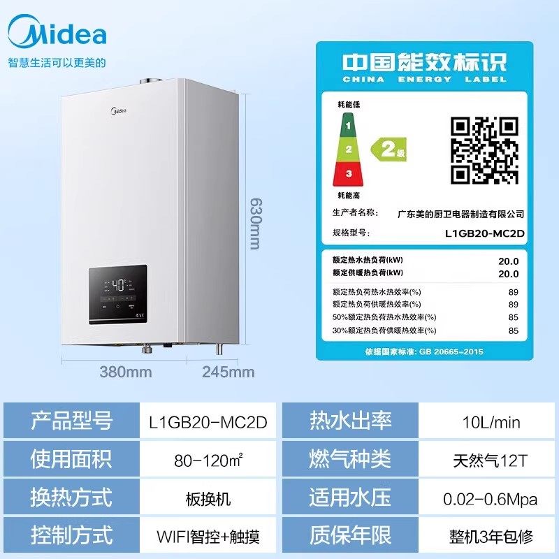 美的壁挂炉天然气双变频家用地暖采暖炉燃气洗浴两用节能新款MC2D