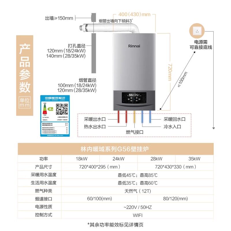 林内家用壁挂锅炉RBS-24G56/28G56/35G56采暖炉地暖两用暖域智能