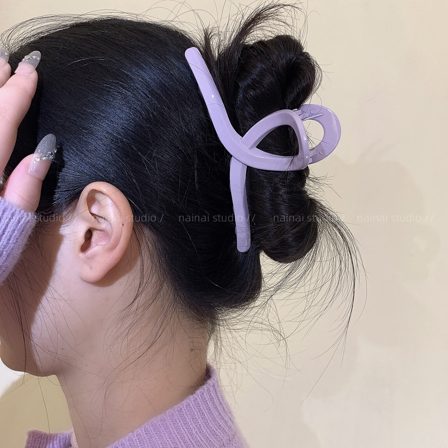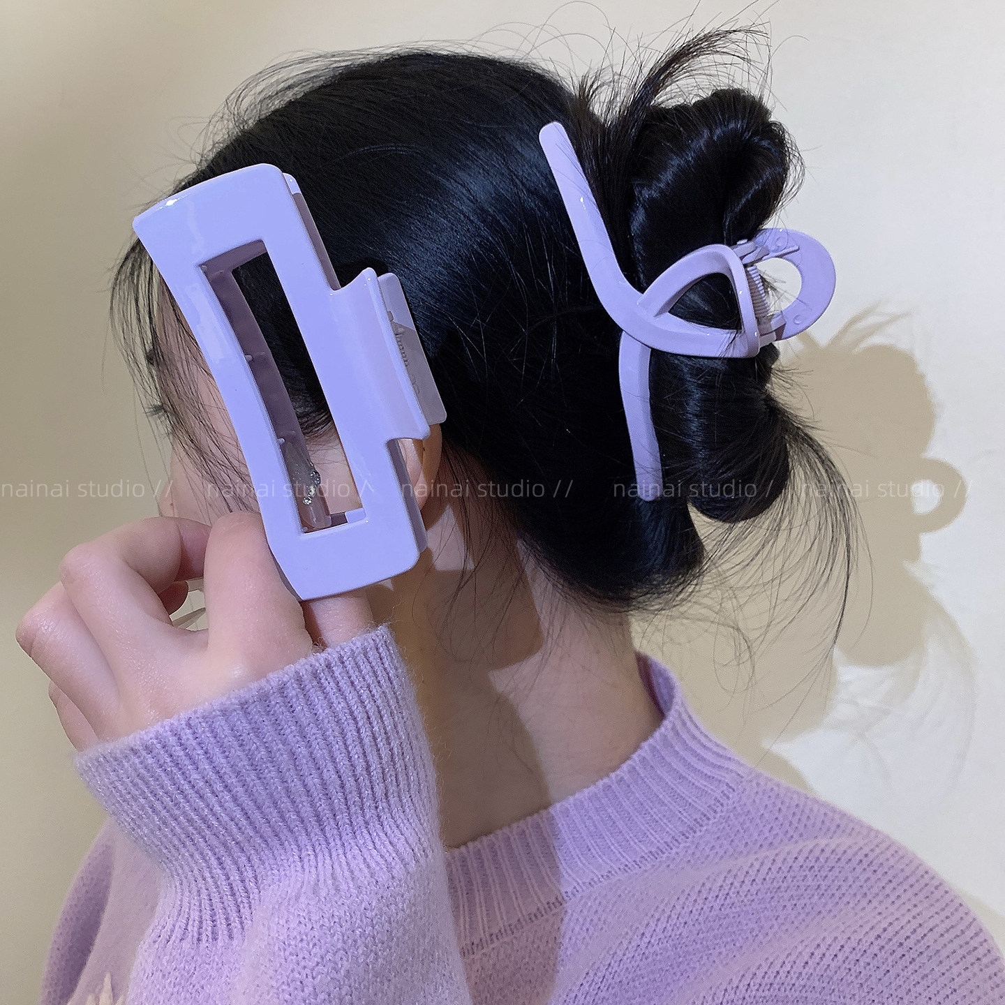 紫色抓夹~温柔气质2026春季新款大号后脑勺盘发鲨鱼夹发饰头饰女A