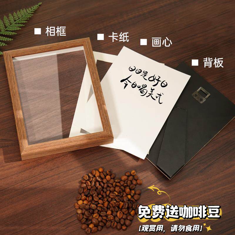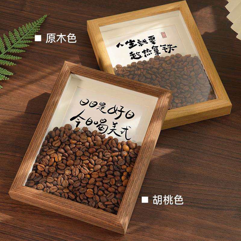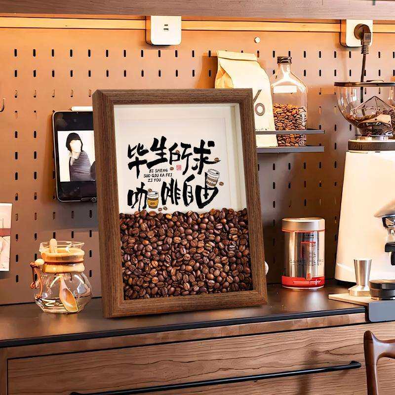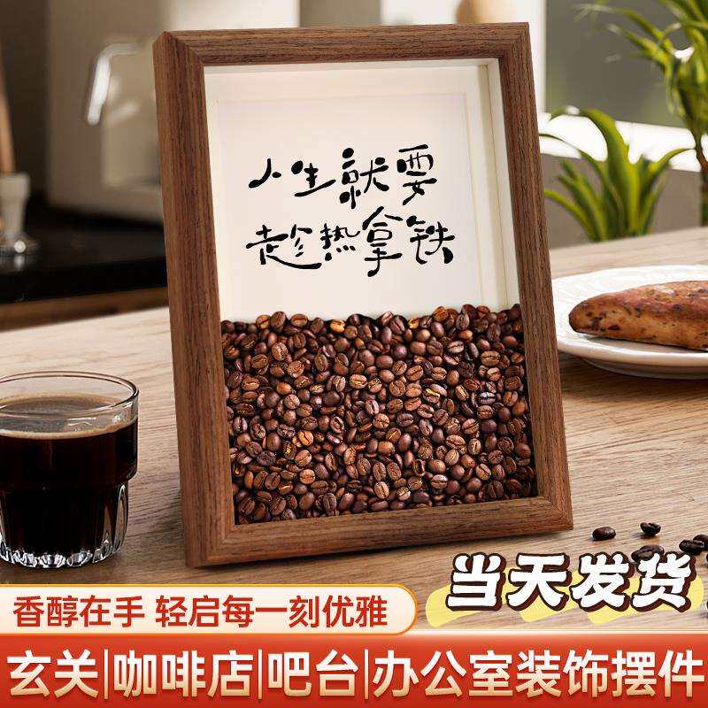 咖啡店装饰摆件美式咖啡豆相框餐边柜氛围布置办公室开业吧台饰品