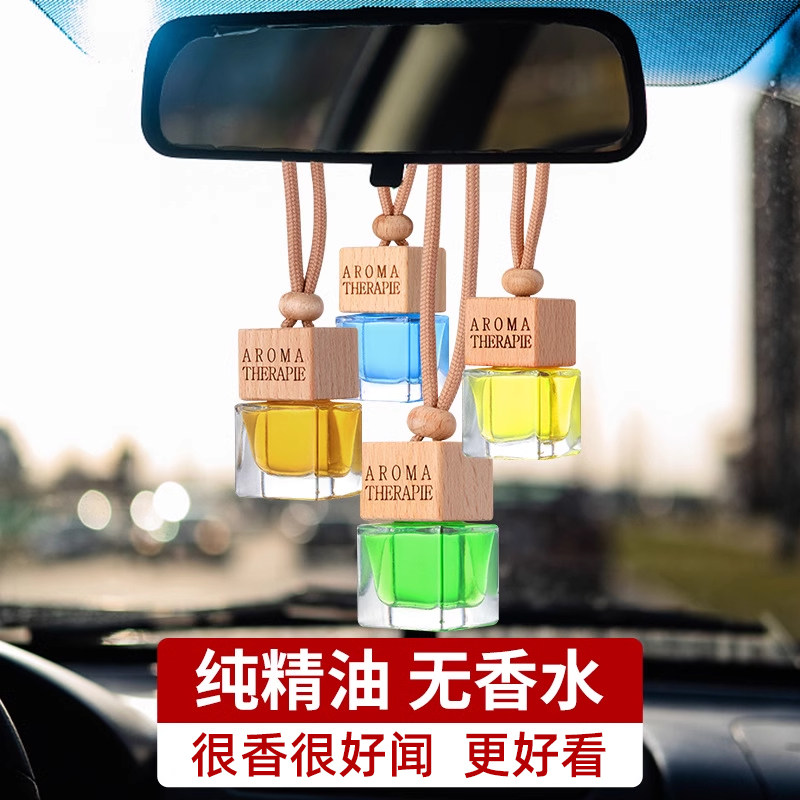 车载香水香薰吊坠汽车挂饰持久淡香精油车内挂件悬挂式玻璃瓶木盖