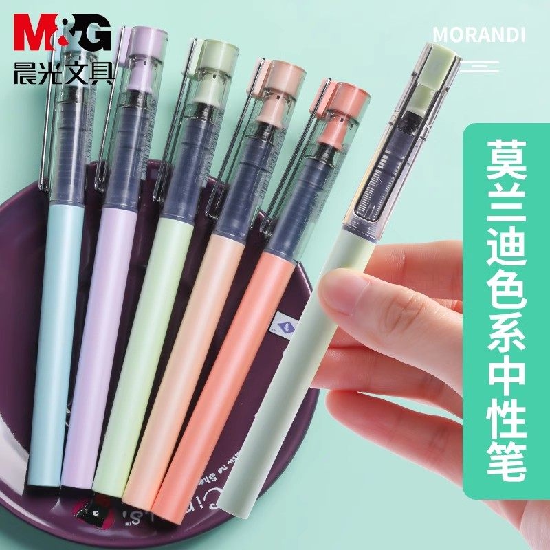 晨光莫兰迪色系M1707直液式走珠笔5支套装0.5mm全针管尖8001笔芯