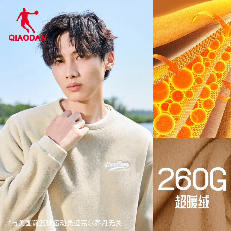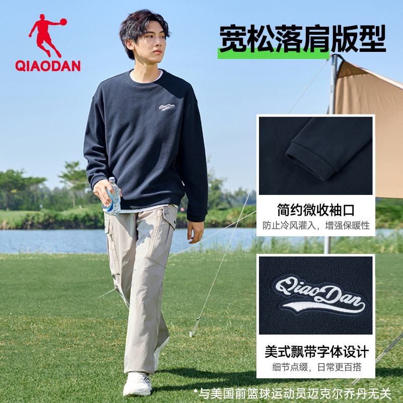 乔丹圆领摇粒绒运动卫衣男2025冬季新款保暖套头衫户外抓绒衣上衣