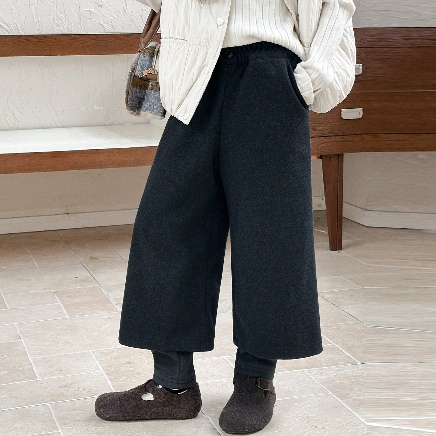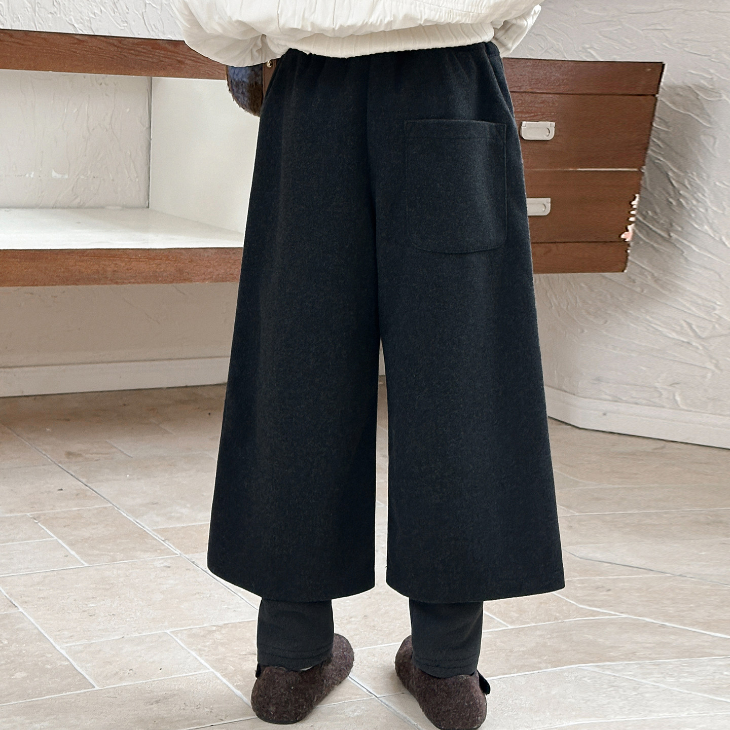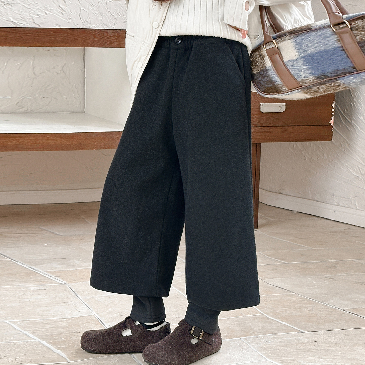女童加绒秋冬裤子儿童加厚假两件打底裤一条过冬女孩阔腿七分裤潮