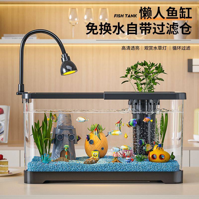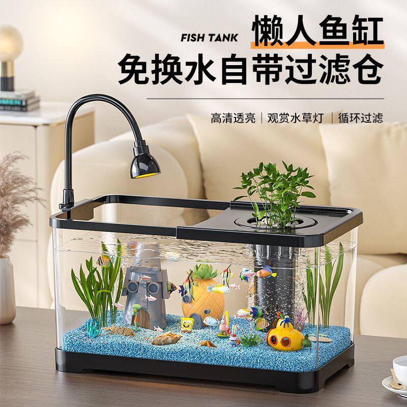 鱼缸水族箱桌面金鱼缸生态造景过滤制氧一体机客厅家用带盖造景缸