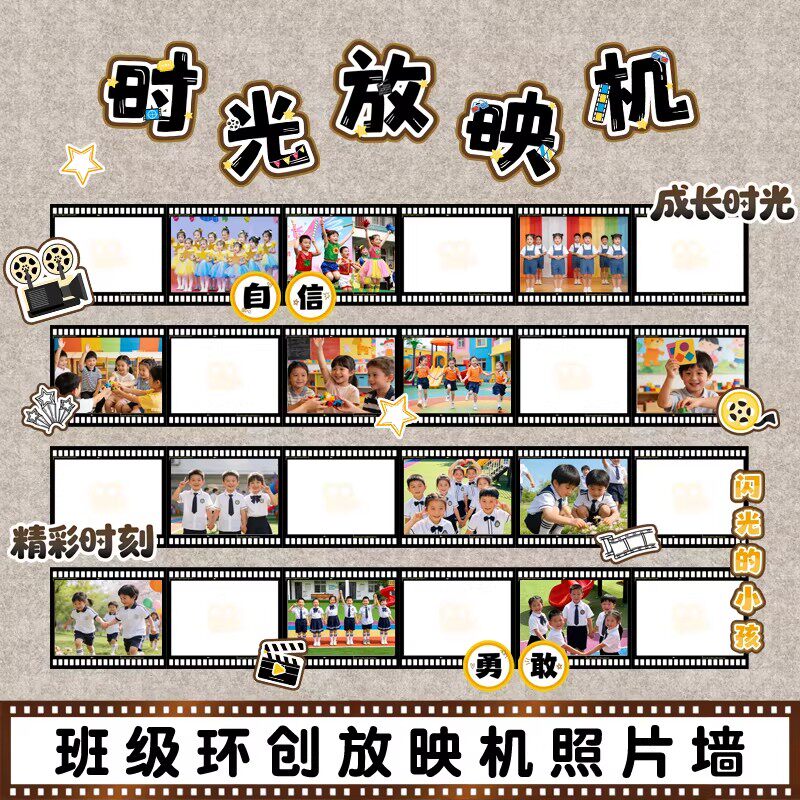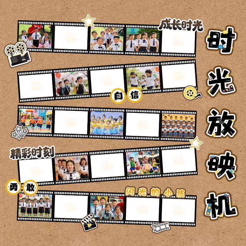 电影胶片班级照片墙卡片小学生幼儿园毕业季成长记录风采展示布置