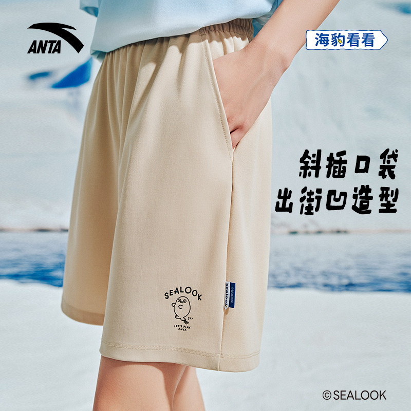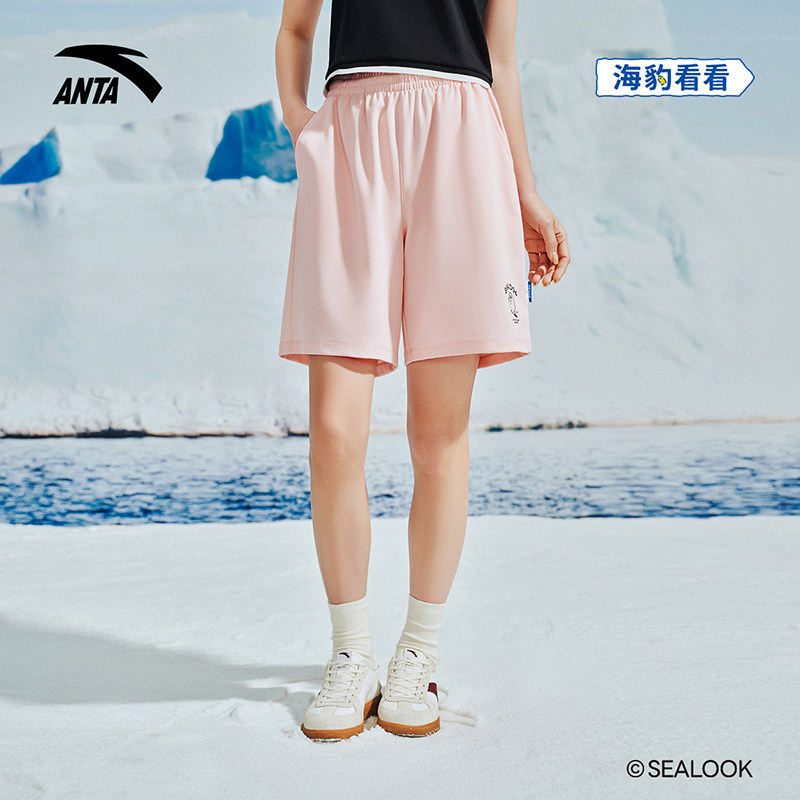 安踏×海豹看看联名丨冰丝运动短裤女士夏季新款针织直筒五分裤子