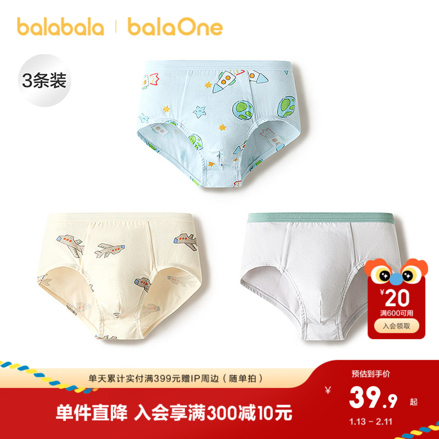 【balaOne】巴拉巴拉儿童内裤棉男童不夹pp抗菌裆四角短裤三条装