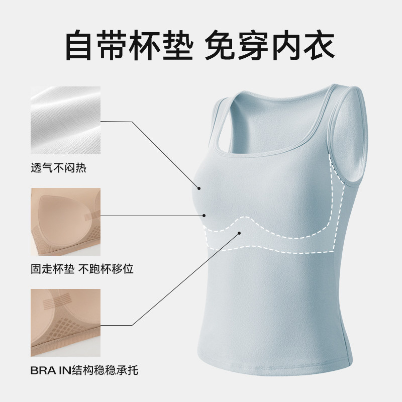 2025新款宝娜斯绵羊毛保暖背心女带胸垫内衣修身内搭秋冬季打底