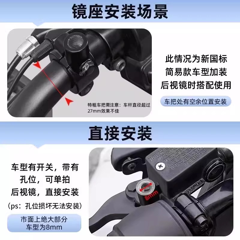 电动电瓶车后视镜自行车圆镜适用雅迪爱玛大视野倒车反光镜子通用