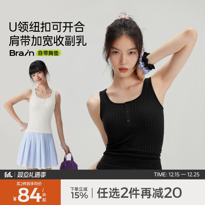 半练外穿吊带纽扣带胸垫宽肩带背心女夏文胸一体免穿文胸内搭上衣