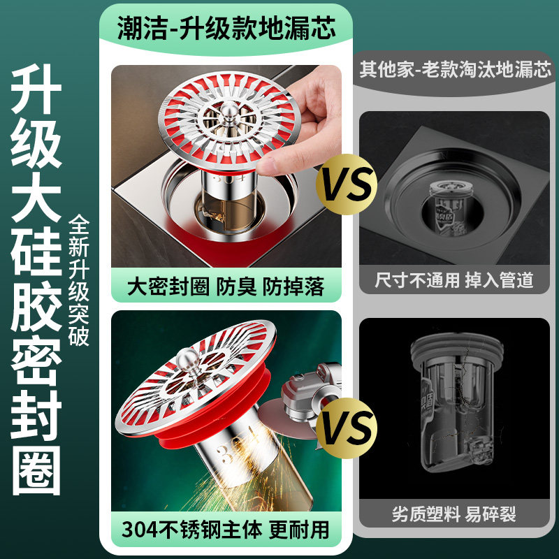 地漏防臭器内芯卫生间下水道防返臭防反味神器硅胶地漏盖防臭商用