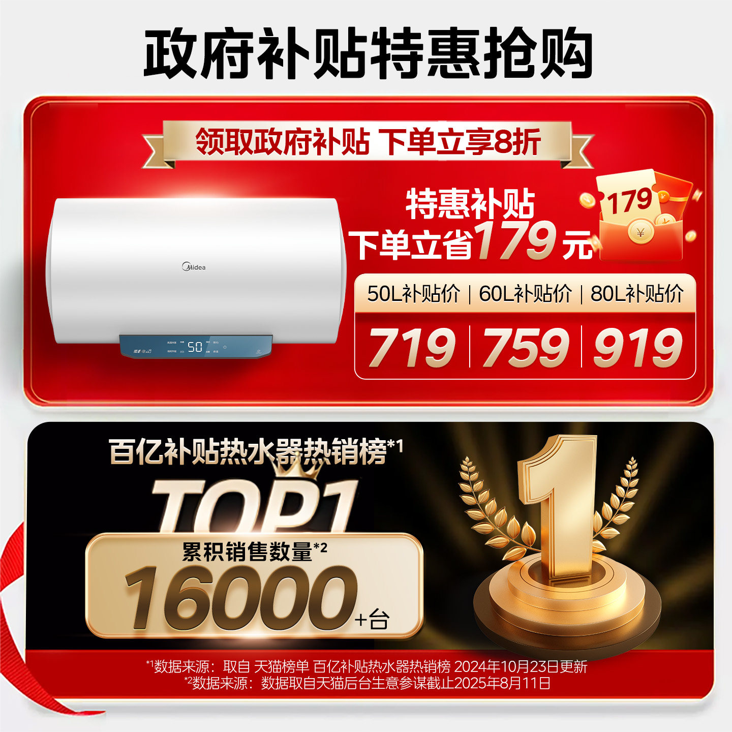 美的电热水器家用卫生间洗澡出租一级省电50/60/80L官方旗舰店JM1